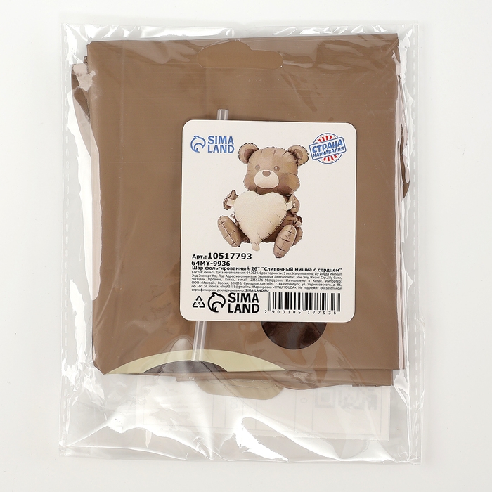 Шар фольгированный 26" «Сливочный мишка с сердцем», под воздух