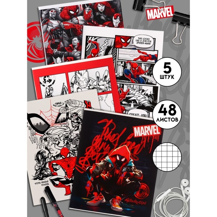 Комплект тетрадей из 5 шт "Человек-паук", 48 листов, в клетку