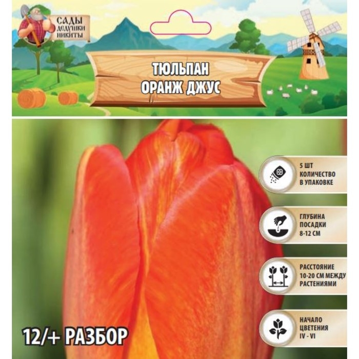 Тюльпан Оранж Джус, р-р 12/+, 5шт, Осень 2024