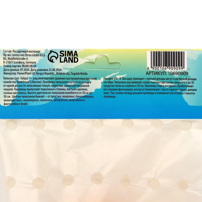 Посадка; Тюльпаны обычно сажают осенью, за 6-8 недель до наступления заморозков. Луковицы следует углублять на 10-15 см, в зависимости от их размера. Рекомендуется сажать их в группах для создания более эффектного цветочного эффекта.