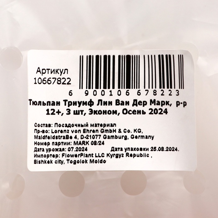 Тюльпан Триумф Лин Ван Дер Марк, р-р 12+, 3 шт, Эконом, Осень 2024
