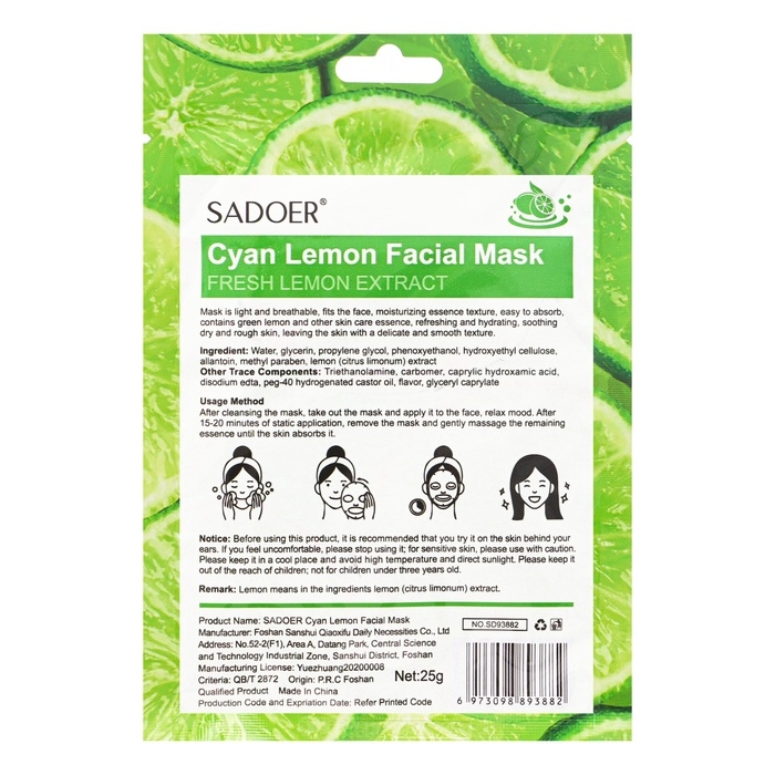 Способ применения: нанесите маску на сухую кожу, избегая области вокруг глаз и губ. Оставьте маску на 15-20 минут, затем тщательно смойте тёплой водой. Для достижения наилучших результатов используйте маски 2-3 раза в неделю.