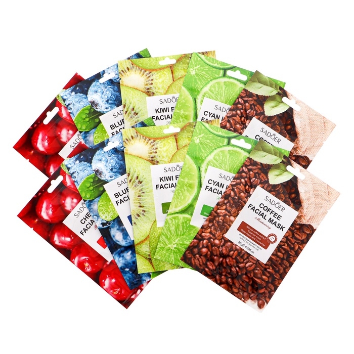 Набор масок для лица с экстрактами: киви, голубики, вишни, кофе и лайма, 10 шт
