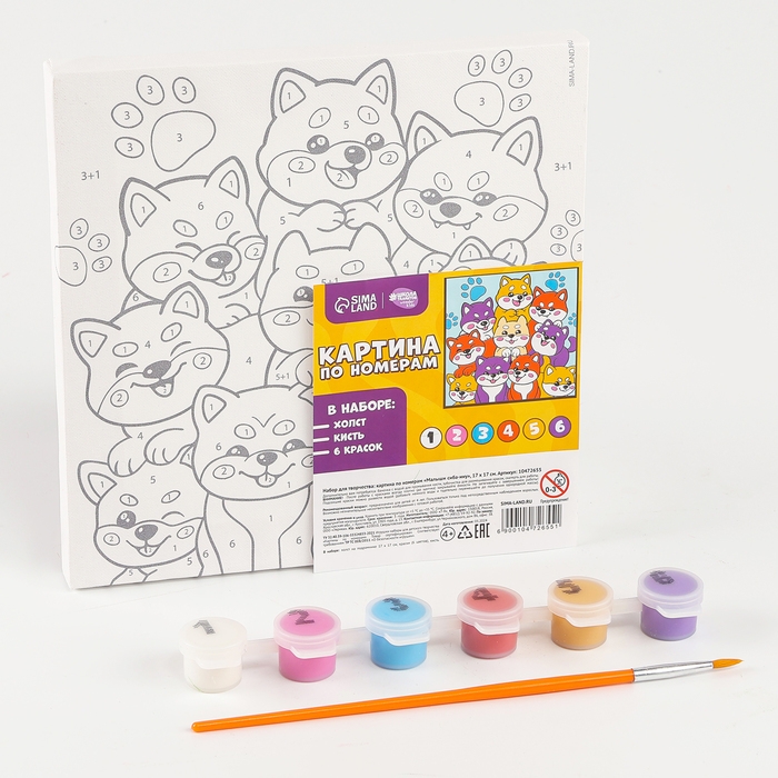 Картина по номерам на холсте с подрамником для детей «Малыши сиба-ину», 17 х 17 см