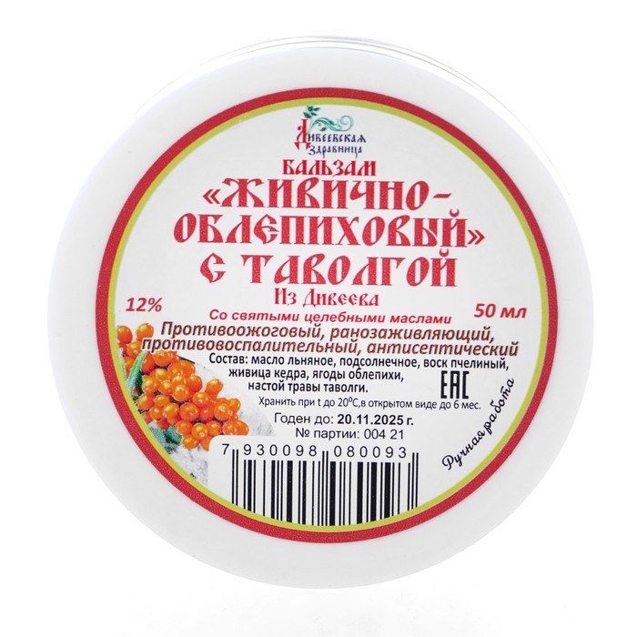 Мазь восковая Дивеевская здравница "Живично-облепиховый" с таволгой, 50 мл