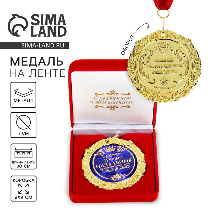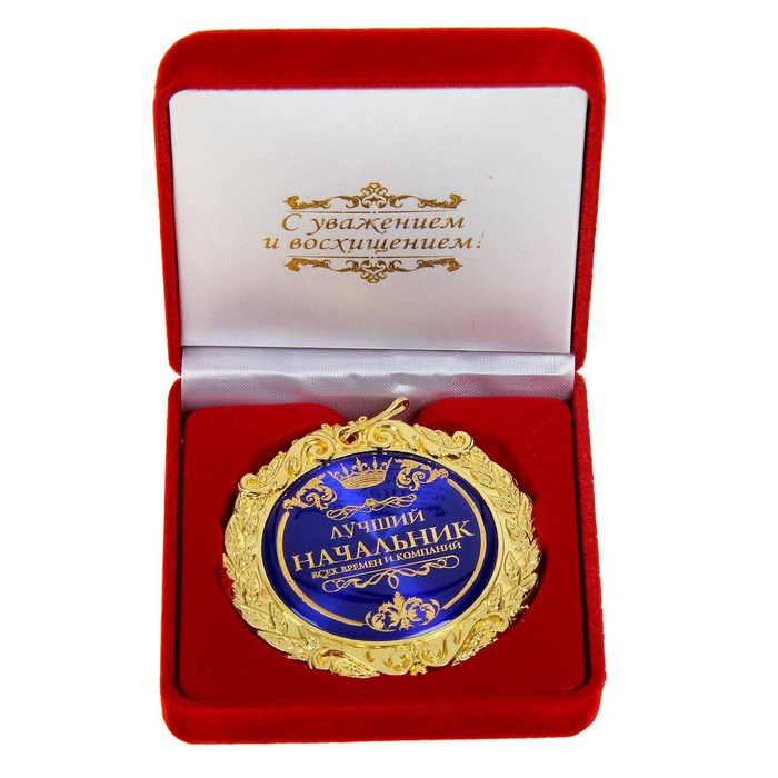Медаль в бархатной коробке «Лучший начальник», d= 7 см.