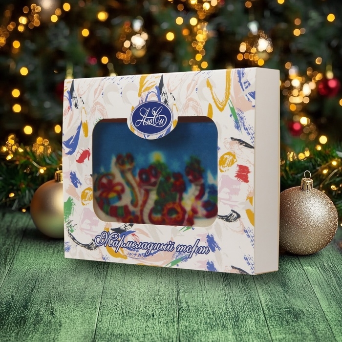 Новогодний мармеладный торт "Символ года" в праздничной упаковке — это великолепное лакомство, которое станет ярким акцентом вашего новогоднего стола. В оформлении торта использованы традиционные новогодние мотивы, а сама упаковка, украшенная снежинками и елочными игрушками, создает атмосферу волшебства и праздника. Каждый кусочек этого торта привнесет в ваше торжество сладкое наслаждение, идеально сочетая в себе аромат и текстуру мармелада, который тает во рту.