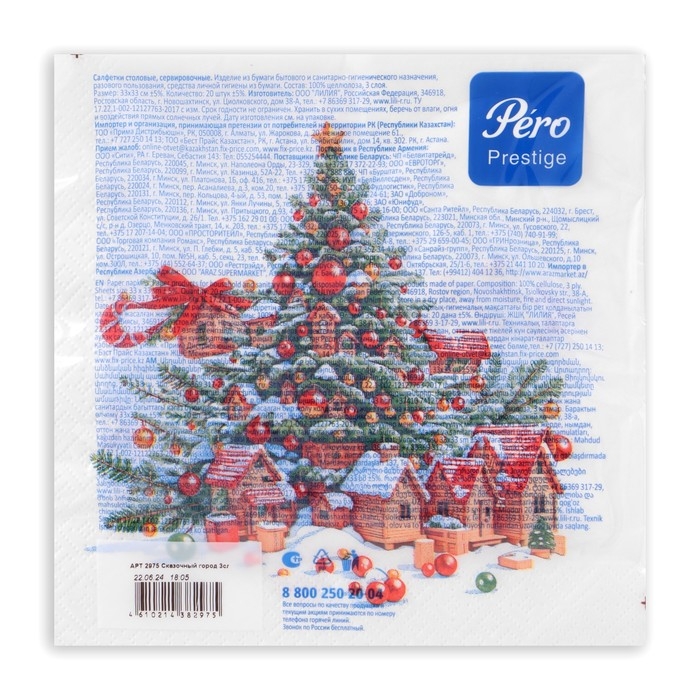 Новогодние салфетки бумажные Pero Prestige «Сказочный город», 3 слоя, 33х33 см, 20 шт