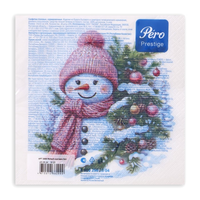 Салфетки бумажные Pero Prestige «Милый снеговик», 3 слоя, 33х33, 20 шт