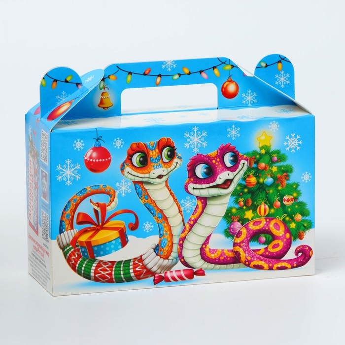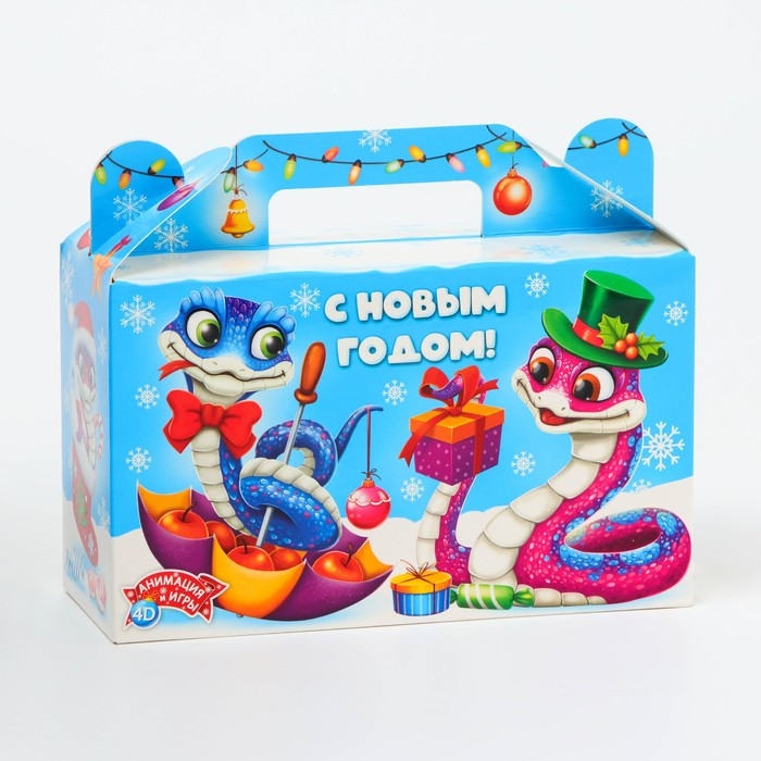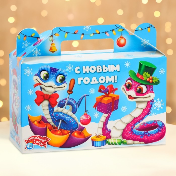 Подарочная коробка Новогодняя Подарочек малый "Змейки" с анимацией 17,5 х 7 х 10,5 см.