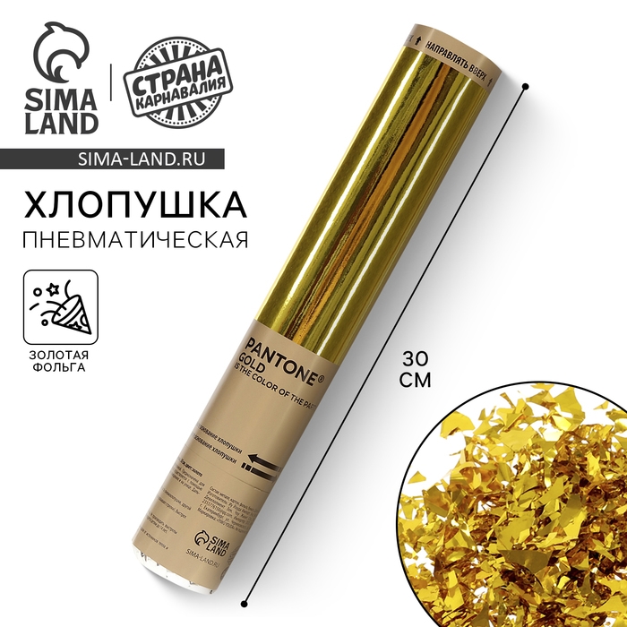 Хлопушка пневматическая "Золотая вечеринка" 30см, цвет золото