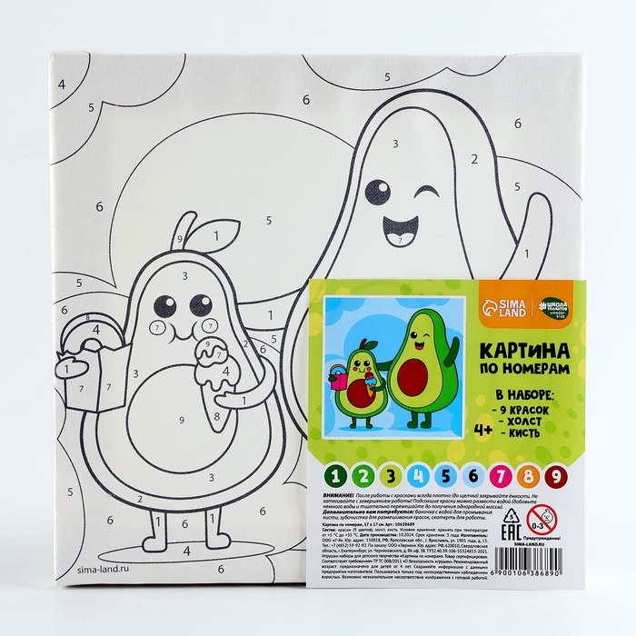 Картина по номерам на холсте с подрамником для детей «Авокадо с мороженым», 17 х 17 см