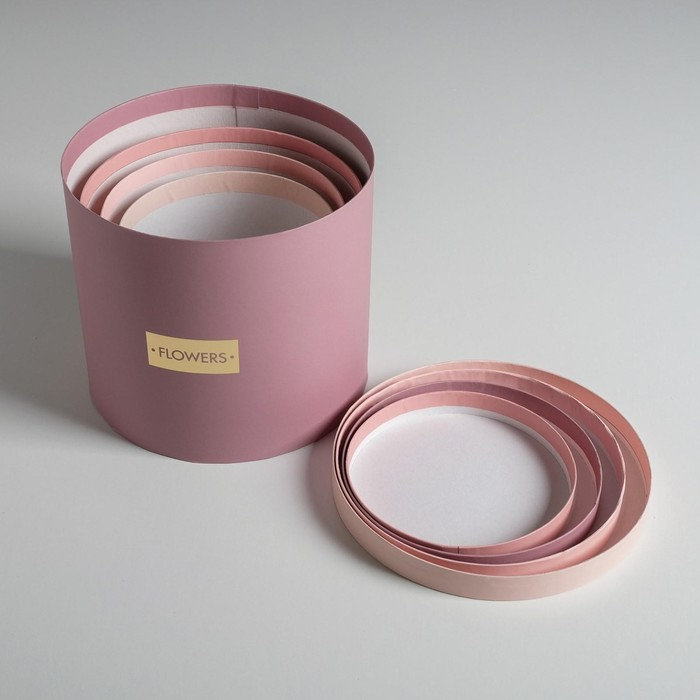Набор шляпных коробок для цветов 4 в 1, упаковка подарочная, «Нежные тона», 14 х 13 см - 20 х 17,5 см