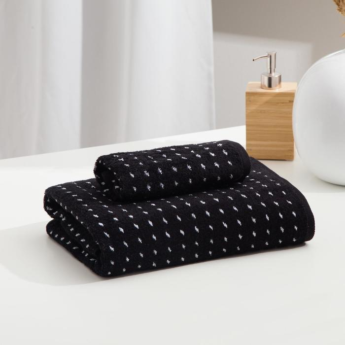 Полотенце махровое Этель ЧБ «Пунктир», пестроткань, 70х130 см