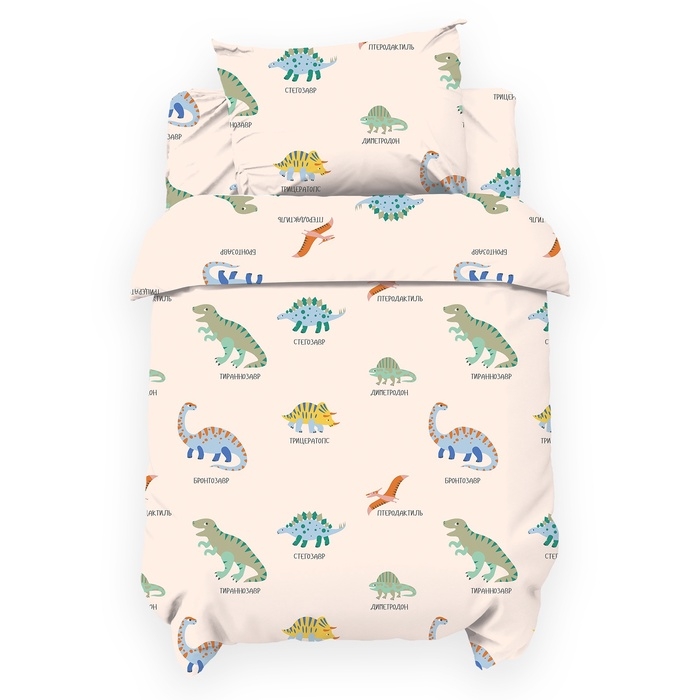 Постельное бельё "Крошка Я" Динозаврики 112*143 см, 60*120+20 см, 40*60 см, бязь 125 г/м2, хл 100%