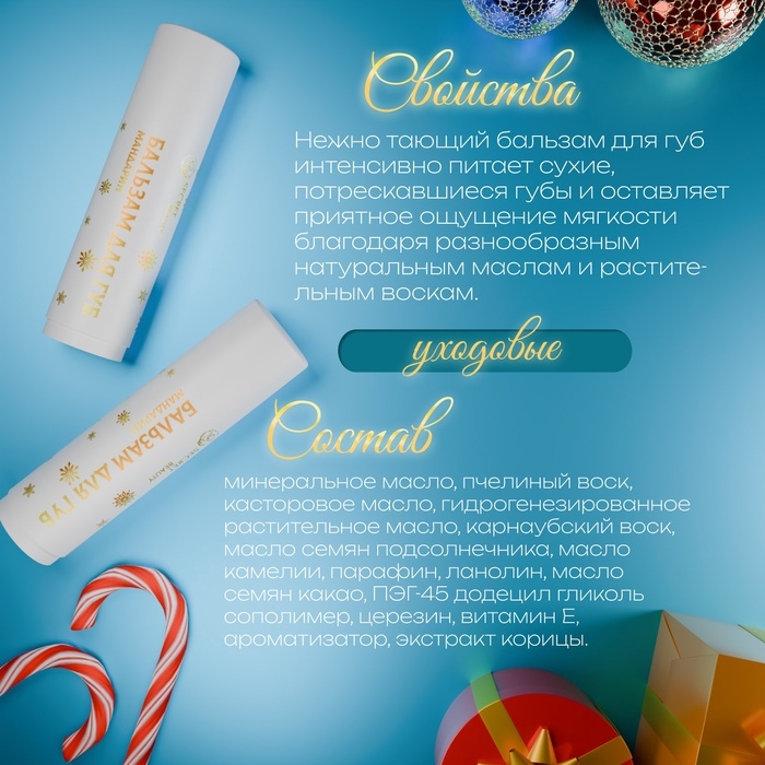 Создайте атмосферу праздника и уюта с этим замечательным набором из двух бальзамов для губ с ароматом мандарина. Такой подарок станет не только приятным, но и полезным для ухода за губами в зимний период. Мандарин — символ Нового года, который ассоциируется с теплой атмосферой праздника и сладким вкусом зимы.