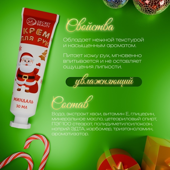 Новогодний крем для рук увлажняющий с ароматом миндаля, 30 мл