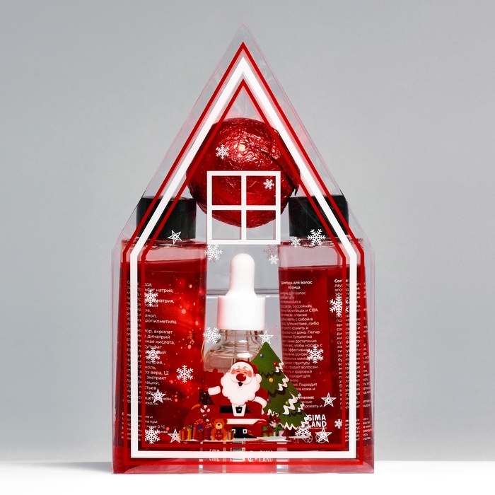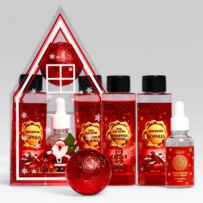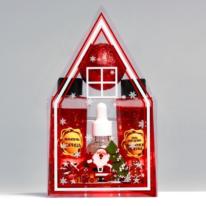 Новогодний подарочный набор косметики «Пряничный домик» для душа и ванны, красная серия