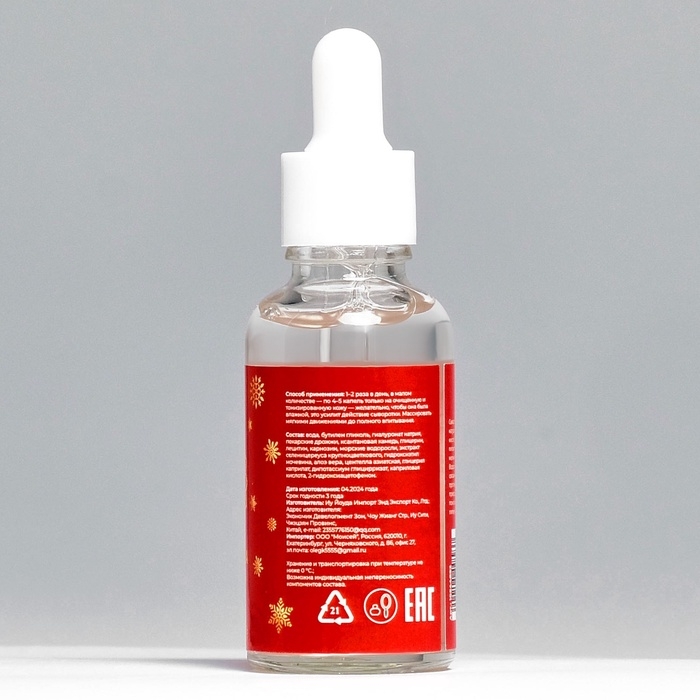 - Сыворотка для лица, 30 мл - проникает в глубокие слои кожи, улучшая её состояние и внешний вид. Она помогает восстановить кожу, делая её более упругой и сияющей.