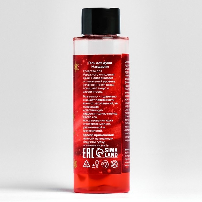 - Гель для душа "Мандарин", 100 мл — его нежная текстура мягко очищает кожу, создавая приятные ощущения свежести и комфорта. Ароматный шлейф геля наполняет душу ощущением праздника, а кожа остаётся увлажнённой и бархатистой на ощупь.