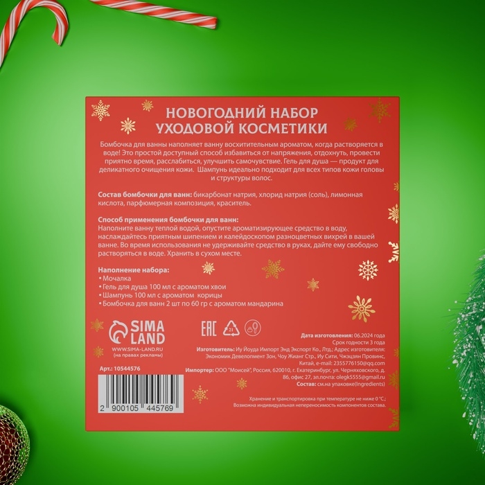 Новогодний подарочный набор косметики «В ожидании рождественского чуда» для душа и ванны, красная серия
