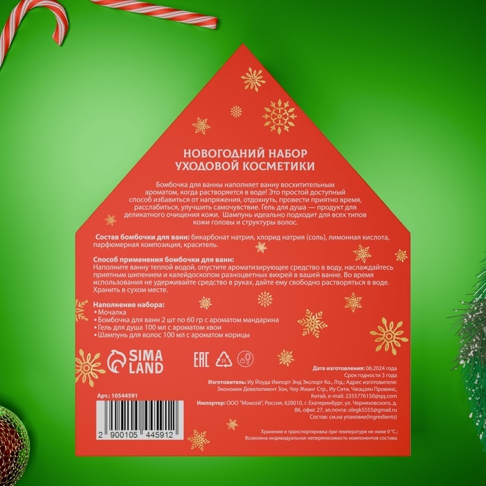 Новогодний подарочный набор косметики «Два мороза» для душа и ванны, красная серия