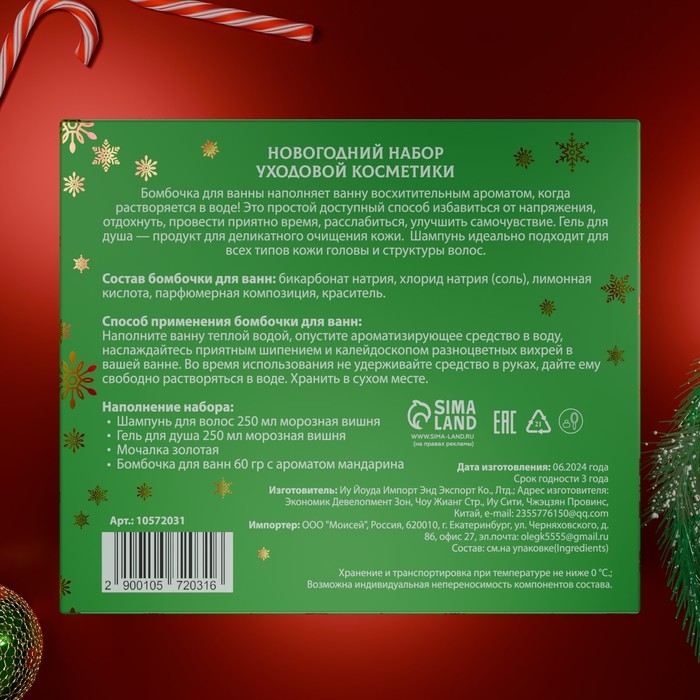 Новогодний подарочный набор косметики «Зимняя сказка», с ароматом розы и корицы. Зеленая серия