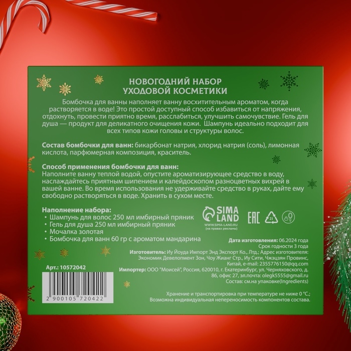 Новогодний подарочный набор косметики «Зимняя вьюга», с ароматом имбирного пряника и корицы. Зеленая серия