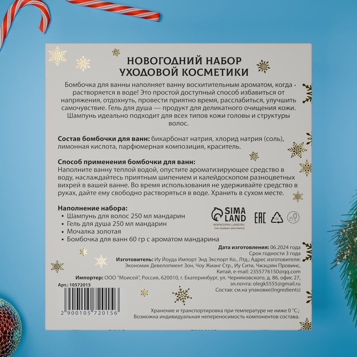 Новогодний подарочный набор косметики «Снежное царство», с ароматом мандарина и корицы. Золотая серия
