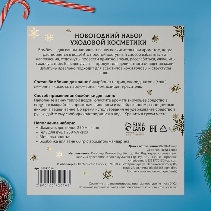 Новогодний подарочный набор косметики «Снежное царство», с ароматом хвои и корицы. Золотая серия