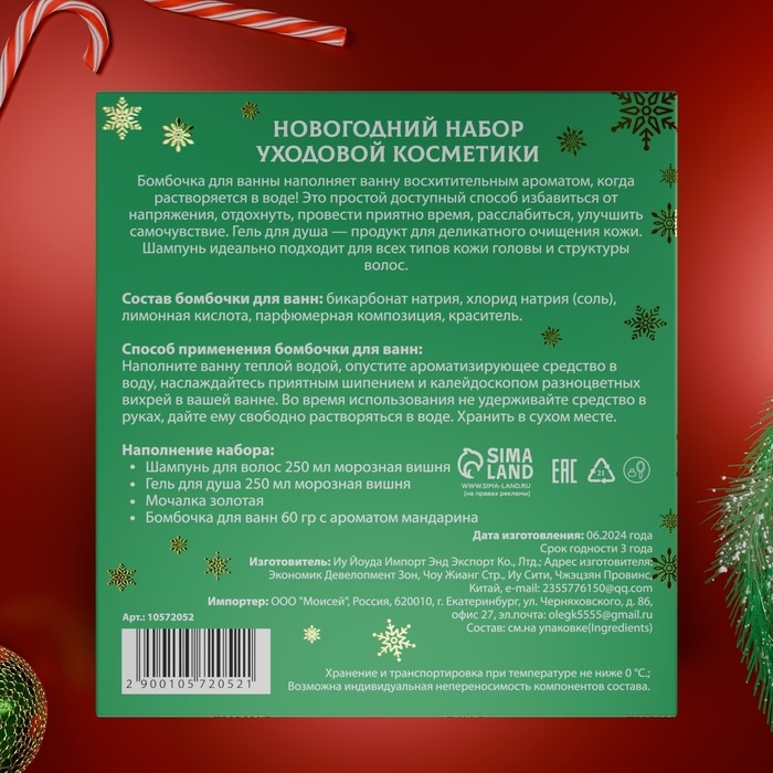 Новогодний подарочный набор косметики «Снежное царство», с ароматом вишни и корицы. Зеленая серия