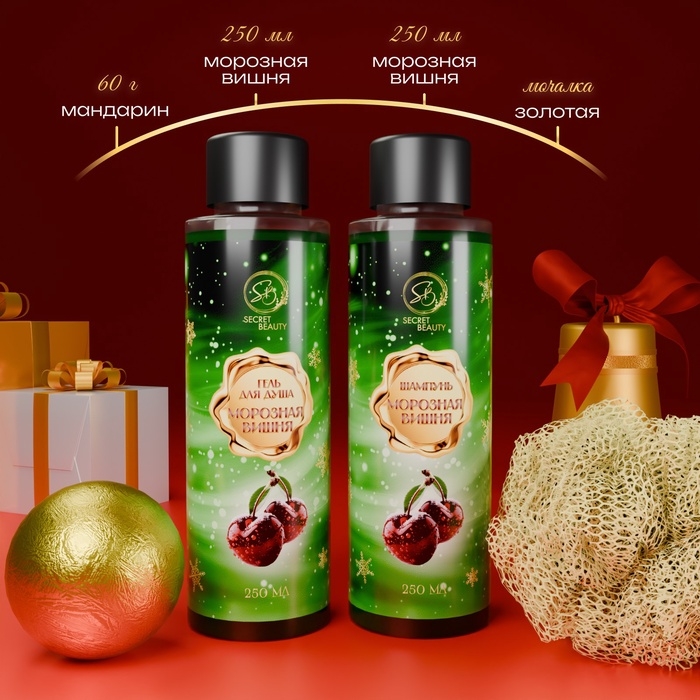 - Гель для душа 250 мл "Морозная вишня"— его нежная текстура мягко очищает кожу, создавая приятные ощущения свежести и комфорта. Ароматный шлейф геля наполняет душу ощущением праздника, а кожа остаётся увлажнённой и бархатистой на ощупь.