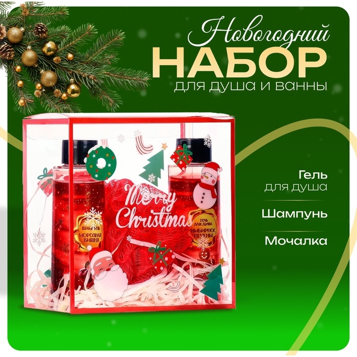 Новогодний подарочный набор косметики «Мастерская Деда Мороза» для душа и ванны, красная серия