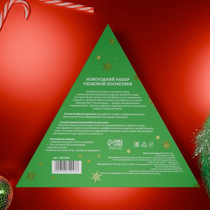 Новогодний подарочный набор косметики «Новогодний экспресс», с ароматом мандарина и корицы. Зеленая серия