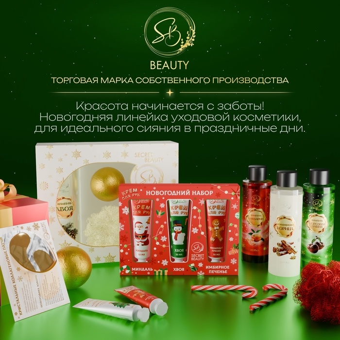 Новогодний набор от торговой марки SB Beauty — это воплощение роскоши и удовольствия, созданный для того, чтобы подарить вам незабываемые моменты ухода за собой. Этот набор станет не только отличным дополнением к вашему праздничному настроению, но и идеальным подарком для близких и друзей.