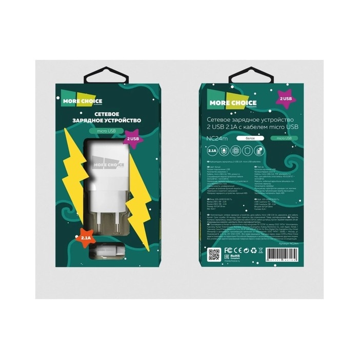 Сетевое зарядное устройство More choice NC24m, 2.1А, кабель micro USB, белый