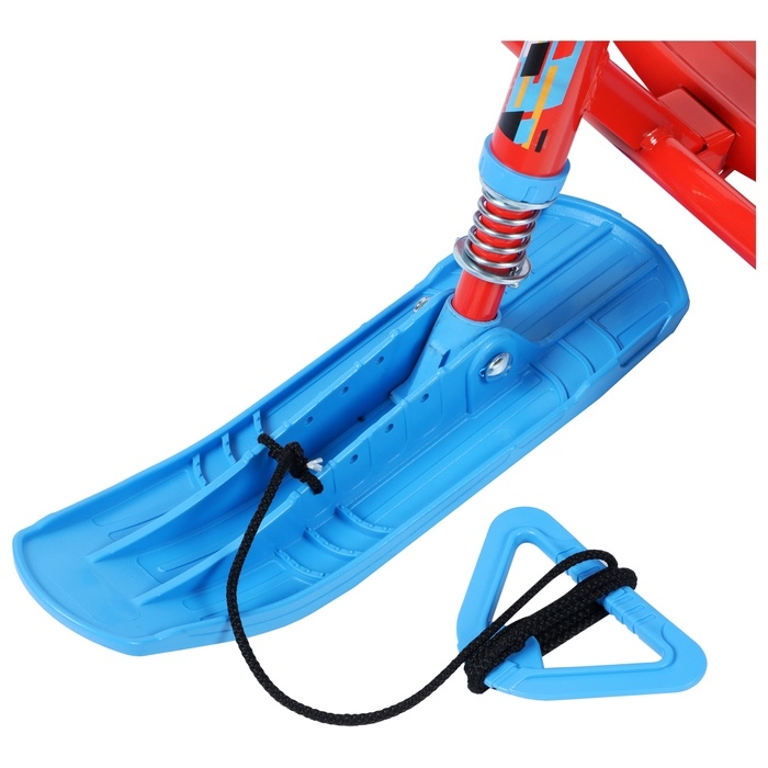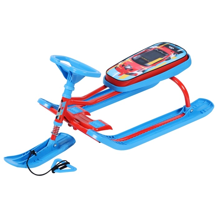 Снегокат предназначен для перевозки детей по плотному снегу или льду и катания с горок. Имеет сварную конструкцию из стальных труб и пластиковых элементов и мягкое сиденье, обтянутое искусственной кожей с рисунком. Оснащён буксировочным тросом. Усиленный тормоз эффективен на обледенелой поверхности. В комплект входит набор наклеек на снегокат.