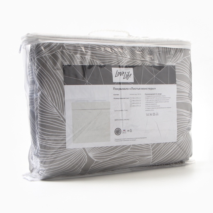 Покрывало LoveLife 2 сп «Листья монстеры», 180х210±5см, микрофайбер, 100% п/э