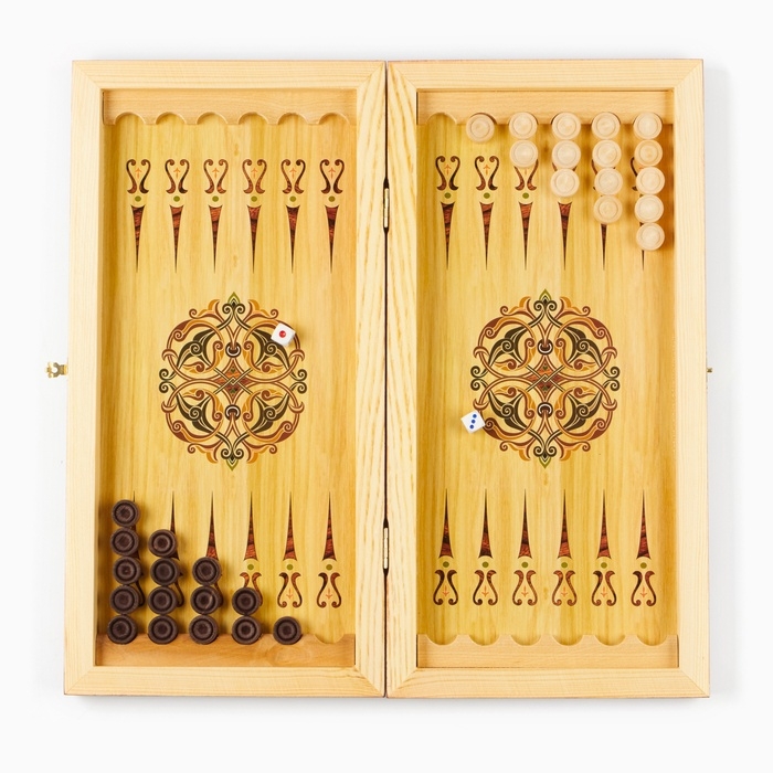 Нарды деревянные большие, настольная игра "Узор", 40 х 40 см, с полем для игры в шашки