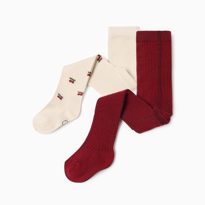 Набор колготок Крошка Я "Вишенки", рост 86-92 см, молочный/бордовый
