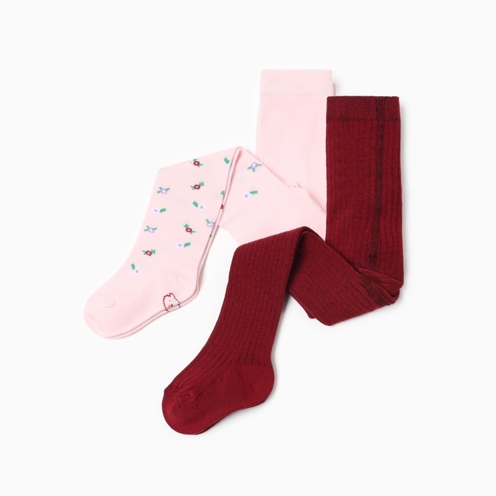 Набор колготок Крошка Я Flowers, рост 86-92 см, розовый/бордовый