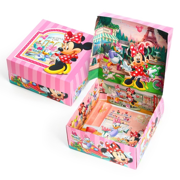 Коробка подарочная складная с 3Д Beautifil girl, Минни Маус, 15 х 15 х 7 см