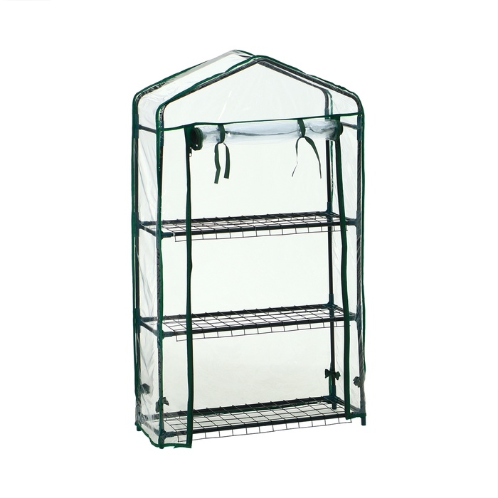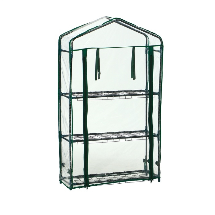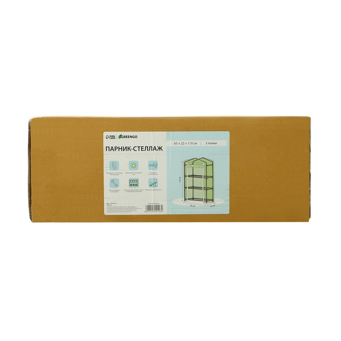 Парник-стеллаж, 3 полки, 110 × 22 × 65 см, металлический каркас d = 12 мм, чехол плёнка 80 мкм, Greengo