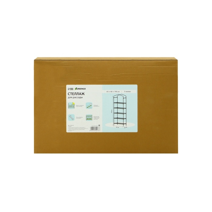 Стеллаж для рассады, 5 полок, 190 × 40 × 65 см, металлический каркас d = 12 мм, без чехла, Greengo