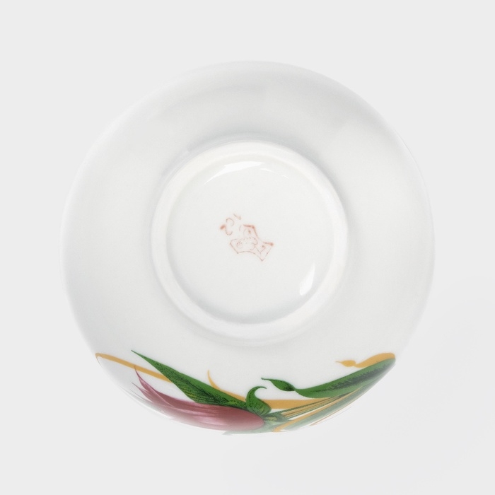 Чайная пара керамическая «Лист», 2 предмета: кружка с ложкой 180 мл, блюдце d=13,5 см, цвет белый