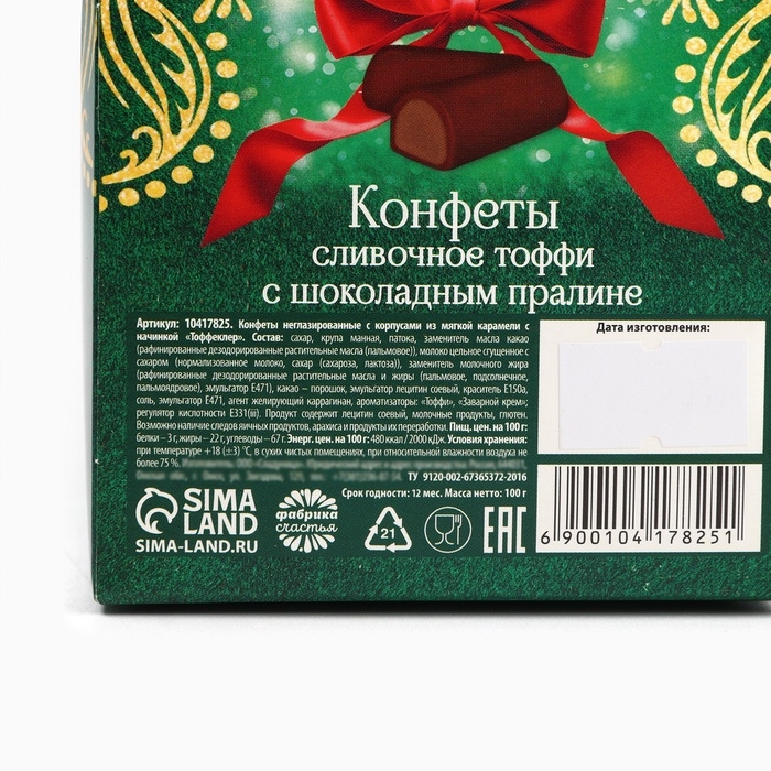 Конфеты на новый год шоколадные в коробке «Счастья», 100 г