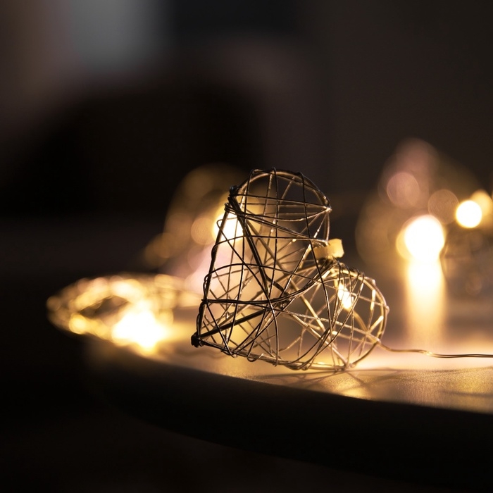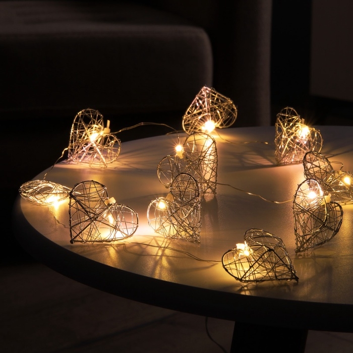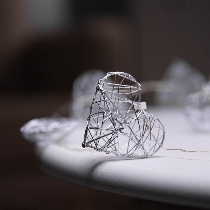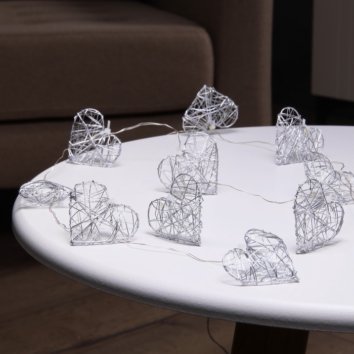 Гирлянда «Нить» роса 4.5х3 см, с насадками «Сердце», IP20, серебристая нить, 10 LED, батарейки ААх2 (не в комплекте), свечение тёплое белое