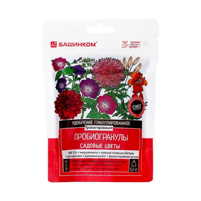 Пробиогранулы "Цветы садовые" — это удобрение, специально разработанное для обеспечения здорового роста и цветения садовых растений. Они содержат полезные микроорганизмы, которые улучшают структуру почвы и способствуют усвоению питательных веществ.