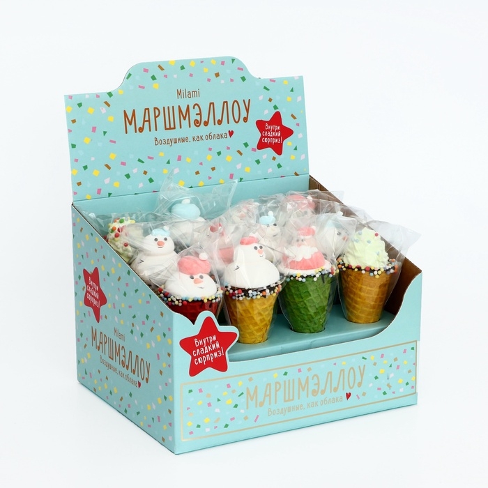 Маршмэллоу в вафельном рожке (Новый год, цветные), 25 г