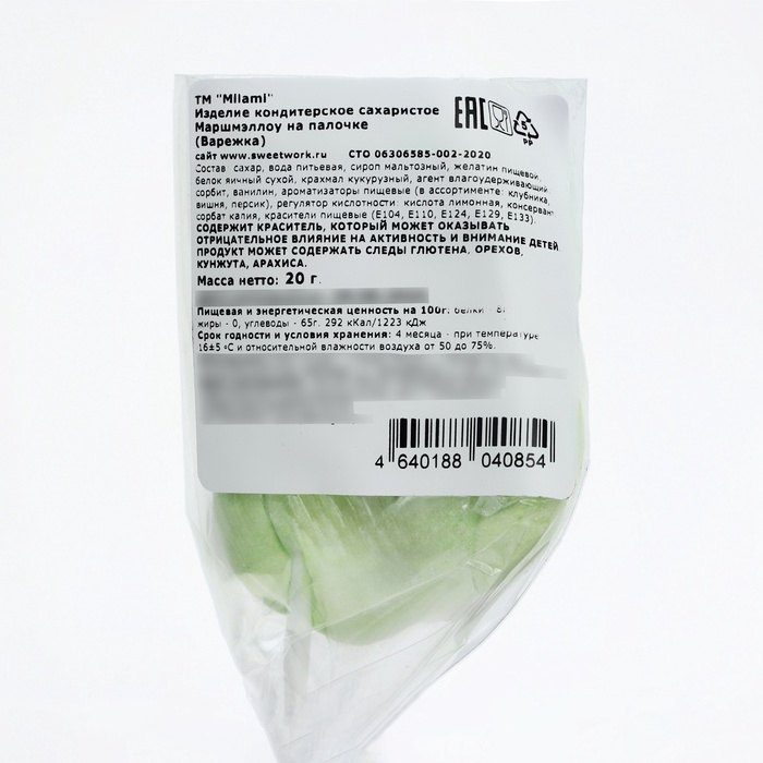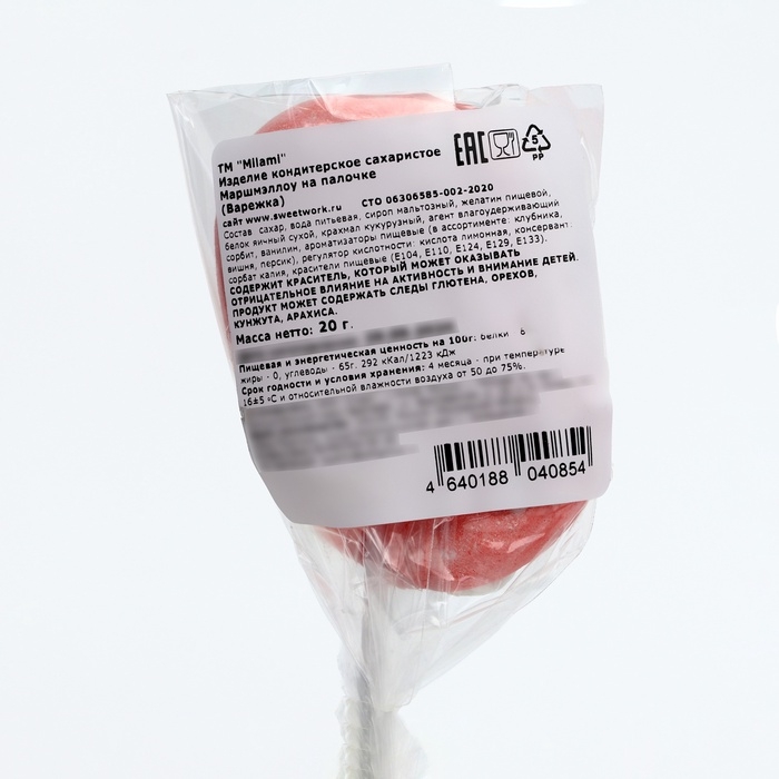 Маршмэллоу на палочке "Варежка", 20 г